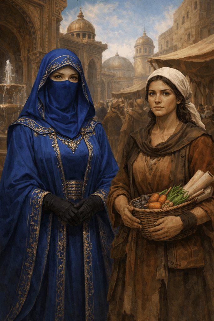 A Free Woman is defined not only by her freedoms, but by her boundaries. Those boundaries are what separate her from the kajira. Where a slave’s body is owned, displayed, and used at the will of another, a Free Woman’s body is her own and therefore guarded. Modesty is not submission. It is a declaration of status. The veil does not erase a woman. It distinguishes her.
